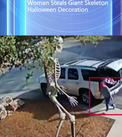 Caught on Camera: Woman Boldly Steals 12-Foot Skeleton Halloween Decoration in Broad Daylight