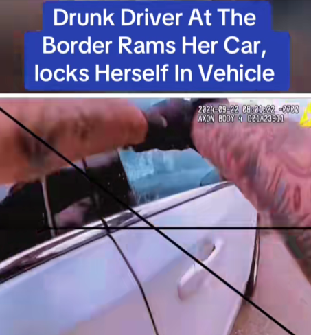 A chaotic and dangerous scene unfolded at a border checkpoint when a drunk driver rammed her vehicle into a barrier and then refused to get out, locking herself inside as officers desperately tried to reach her. The shocking incident, captured on bodycam footage, quickly spread online, leaving viewers stunned at the reckless behavior and the tense standoff that followed.