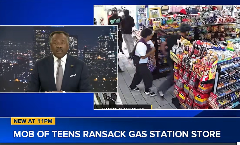 A local gas station owner in the Lincoln Heights neighborhood of Los Angeles is speaking out after chaotic surveillance footage captured a large “flash mob” of teenagers ransacking the convenience store, leaving behind a trail of destruction and stolen goods.