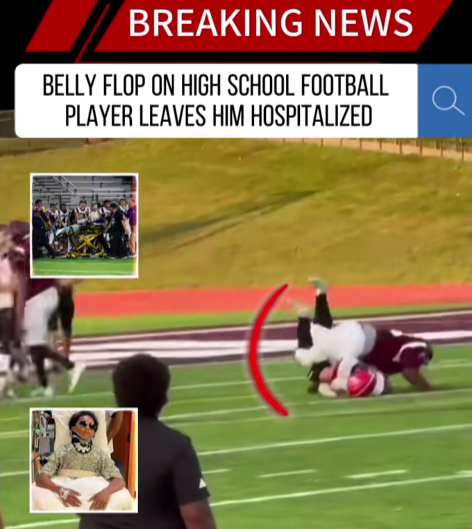 What was supposed to be another spirited high school football game turned into a scene of shock and fear after a tackle gone wrong left one player seriously injured and hospitalized. The incident, now being replayed and analyzed across social media, shows a massive defensive player crashing down with full force in what some witnesses described as a “belly flop,” leaving the opposing player struggling to move.