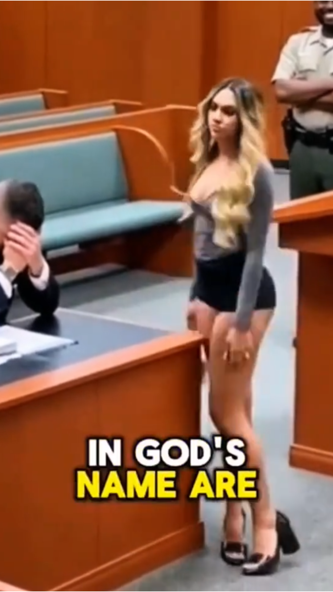 Minutes later, another woman appeared in a short, low-cut dress and heels, visibly annoyed before the judge even spoke.