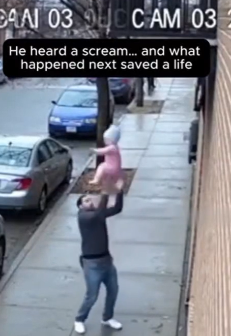 “He didn’t think twice,” said a neighbor who witnessed the incident. “He saw she was about to fall and ran right under her, yelling for someone to grab something soft — a blanket, a mattress, anything.”