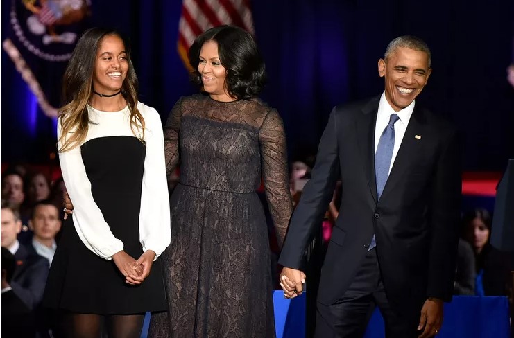 Malia watches her mother and sees more than a grandmother meeting a newborn
