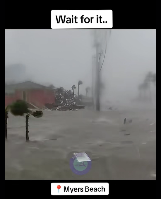 Videos circulating online capture the raw force of nature — walls of water crashing against buildings, streets swallowed whole, and terrified beachgoers clinging to safety. The destruction has left locals stunned, with many calling it the worst disaster Myers Beach has ever seen.