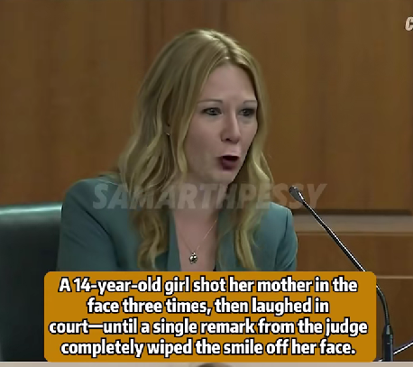 The courtroom was silent—until a chilling laugh broke through. A 14-year-old girl accused of shooting her mother in the face three times stunned everyone when she smirked and chuckled during her trial.