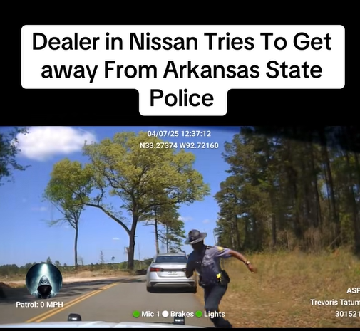 On a quiet stretch of highway just outside Pine Bluff, Arkansas State Police Trooper Trevoris Tatum noticed a silver Nissan drifting over the center line. At first, it looked like a simple case of distracted driving — but when he ran the plates, the hit came back dirty.